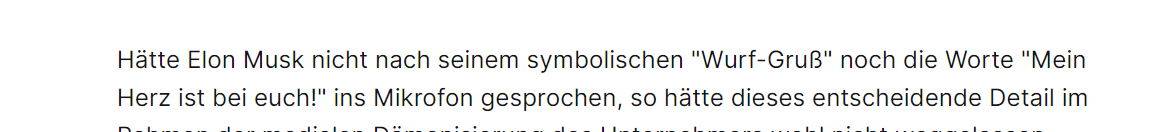 Wenn das nicht ein von Herzen kommender Heil Hinkel Gruss von Elone Muskellos war, dann weiss ich auch nicht. Wenn RT von einem „Wurf-Gruß“ fabuliert, dann ist zumindest klar, wes Geistes Kind der Autor von RT für dieses Pamphlet ist.