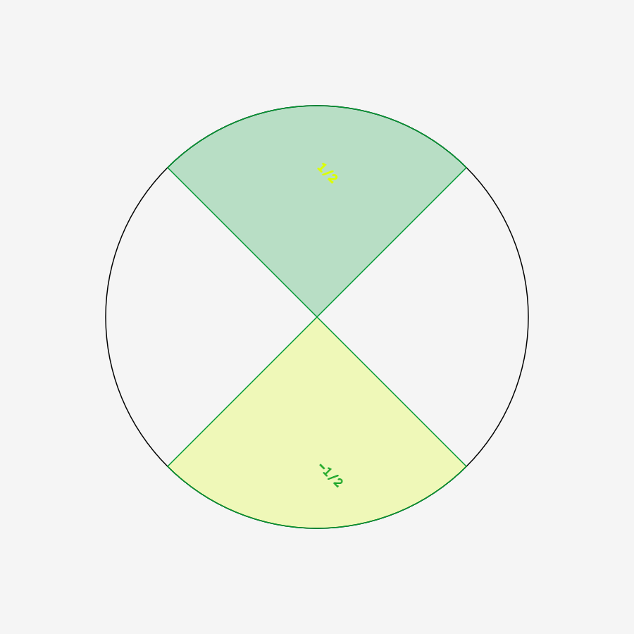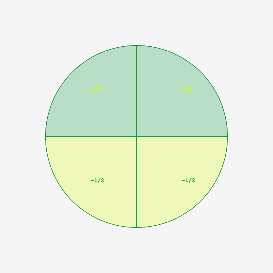 Spin – Verhältnisse Halbkreis: \({\frac {1} {2}}\), \(1\), Vollkreis: \({\frac {1} {4}}\).